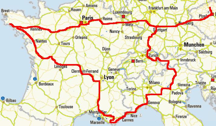 po překročení Německo-Francouzské hranice jsme navigaci přepli tak, aby nás vedla mimo francouzské dálnice, naším záměrem bylo